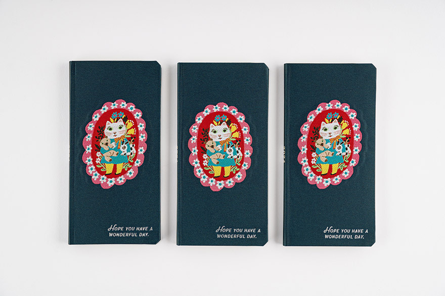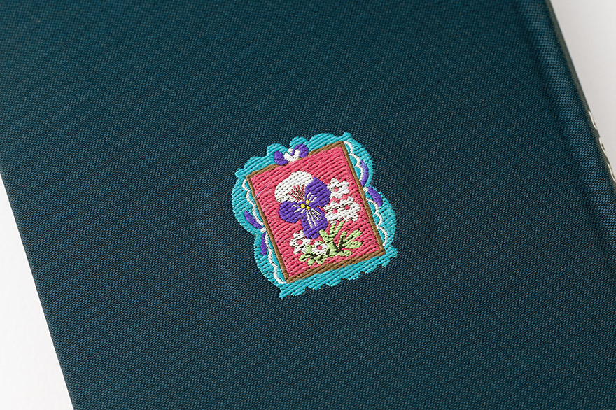The concept behind this Weeks book is “carrying around my own framed artwork.” A special feeling like holding a small work of art by Kitagishi in your own hands, has been created using machines from Kiryu, a town famous for weaving. The special feel and silky sheen of the texture make it different from printed designs, and the navy color gives it a mature look.