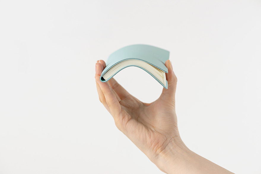 The two layers of soft polyurethane give the cover a moderate thickness and make the book durable.