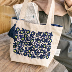 Ukrainian Flowers was a hitdesign when it was featured on a Hobonichi Techo cover. The floral design is based on the beautiful embroidery of traditional Ukrainian clothing, sorochka. It has a simple linen material embroidered with navy and neon yellow threads. The interior isnavy, and the handles include a navy tassel to match the color of the embroidery.