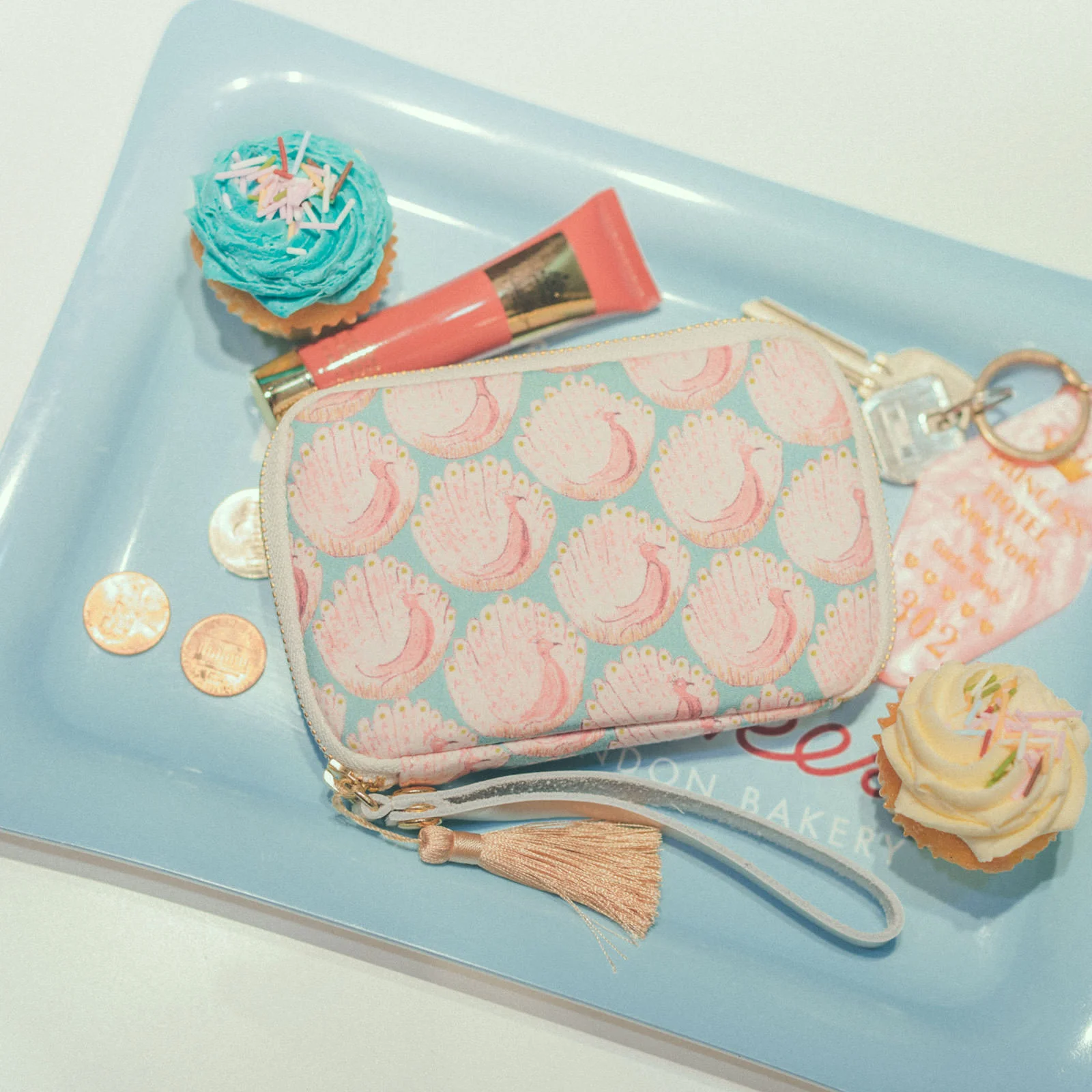 The pouch opens accordian-style and is the perfect size for storing cards. The interior is split into four zones to allow for detailed organization. While compact, the pouch also has enough storage space to hold items with volume, such as lip balm and earbuds.