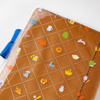 The theme for this design is “wrapping paper for your techo.” Drawn on the cover are many motifs that we often see in our day-to-day activities, from delicious food such as puddings and fried eggs to cute little things like dogs and cats, gloves, keys, steel towers, and traffic lights.