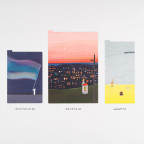 The A5 size features Count the Lights, a popular design in the Hobonichi Techo 2022 lineup. It depicts a sky deep in a sunset during that magical time when the sun is just about to disappear for the day. The back shows how the town sparkles like stained glass up close, almost looking like a textile.