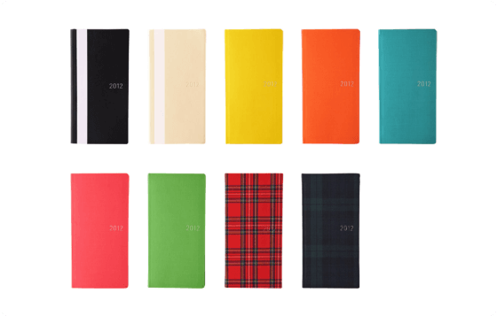 The theme for this year’s techo was “Smile.” The Hobonichi Store exclusives included a small pocket mirror with a smile printed on the surface. 2012’s featured cover, a bright yellow design also called Smile, showcased a sketch by mina perhonen’s Akira Minagawa. This year’s fun cover lineup included collaborations with Disney, sunui, Makino Collection, and Liberty, as well as the debut of the pouch-like Zippers covers. Zippers covers offered users a secure place to store important items, giving the techo more opportunities to shine. In its second year, the Weeks was now offered in 11 designs, including bright colors and even plaid.