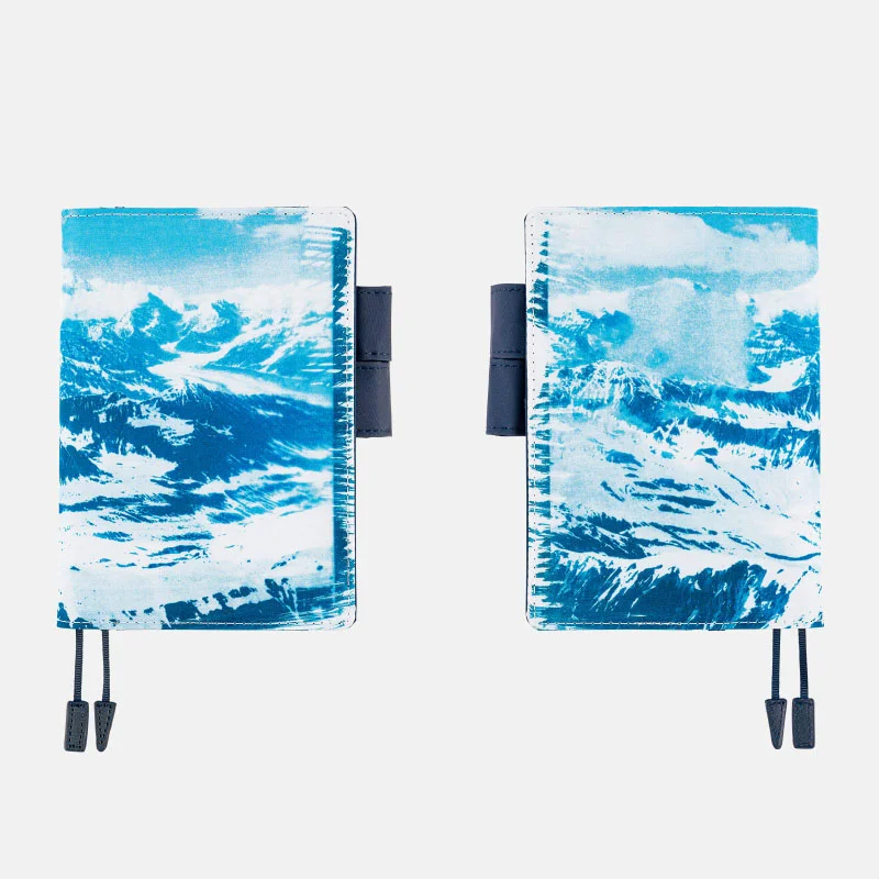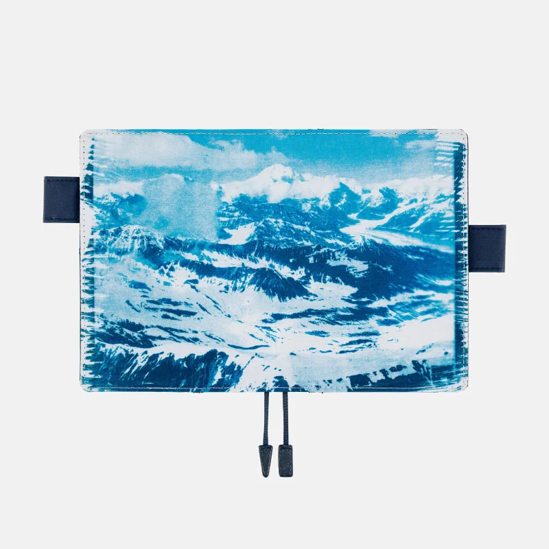 This photo, capturing the full extent of Mount Denali at 6,190 meters above sea level, was taken from inside a Cessna heading towards base camp for the summit. The view of the mountain composed of deep blue and white looks like a watercolor painting at a glance. This photograph is processed with cyanotype, which is a photographic process that involves a chemical solution and exposure to UV light. The appeal in this design comes from the brush marks that let you see where the solution was applied.