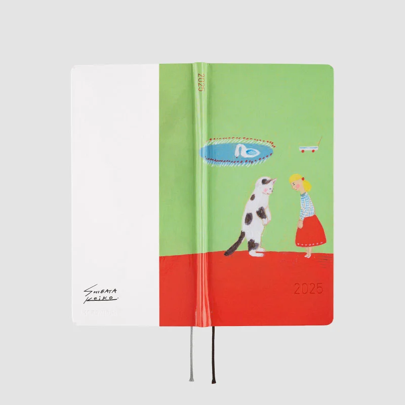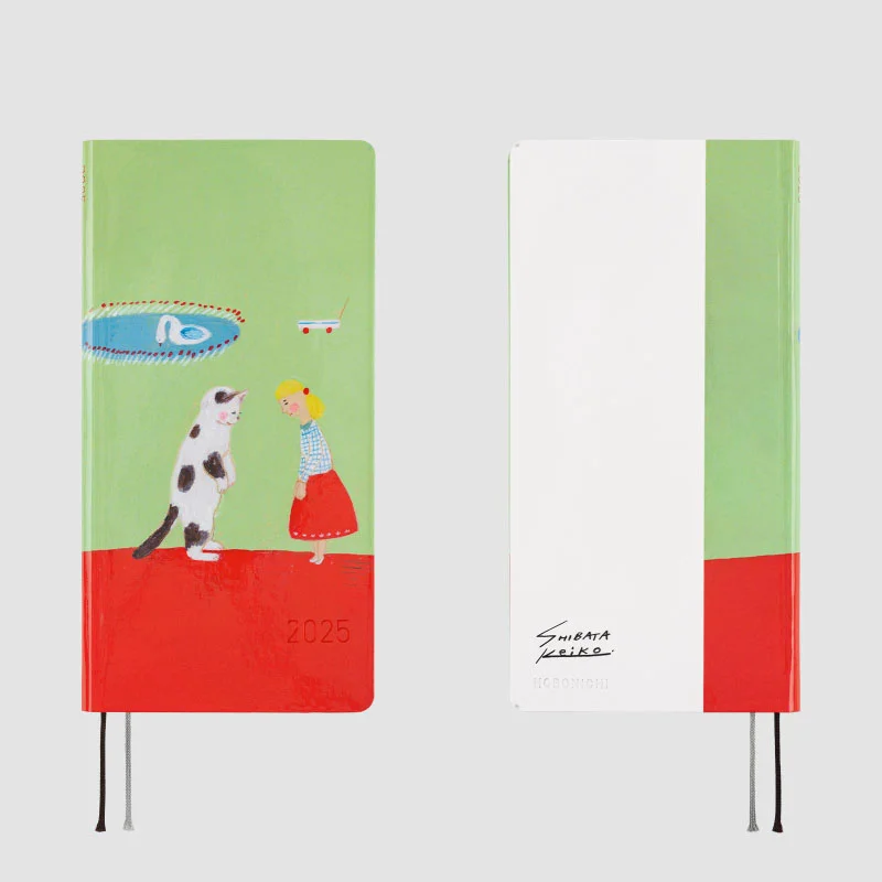 There are many more items in our collaboration with Keiko Shibata in the Hobonichi Techo 2025 lineup! This includes the techo covers “Bus management by Mr. and Mrs. Inoue” in A6 size and “Emotional Reunion with Kariya-san” in A5 size. There’s also a Weeks book called “Thanks for your hard work, Aoki-san.” The design “Dog Ears Fluttering in the Wind” is available on a Cover on Cover, which fits over a Hobonichi Techo A6 or A5 cover, and the Clear Cover, which fits over a Weeks book. The Hobonichi Paper(s) notebook has a cover with the design “Ueda-san’s summer of hugs.” Also available with prints by Keiko Shibata are the Hobonichi Pencil Board and a graph paper notebook, which continue from last year’s lineup. These all help expand the unique and charming world of Keiko Shibata!