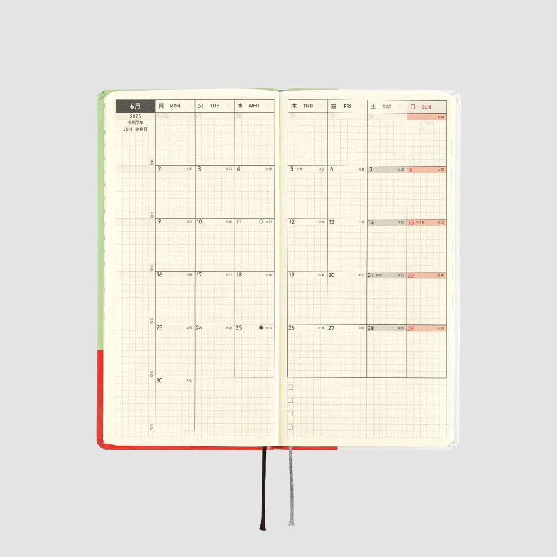 | Paper Type / Binding | Thin, light Tomoe River paper resistant to bleeding and designed for planners / Stitch-binding |