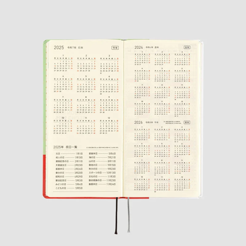 | Bonus Pages | Shorthand Note-Taking / Using Common Items to Measure Size / My 100 / Sample Symbols and Icons / Recommended Noodle List of 47 Prefectures / Solar Terms / Emergency Preparedness / Age Table / Conversion Chart / Getting the most of Hobonichi / Contact List / Personal Notes |