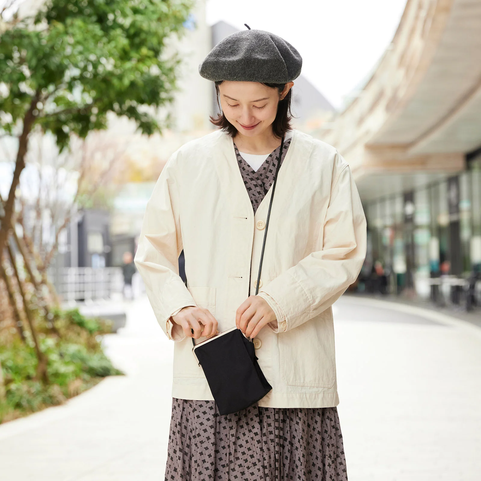 Carry it with you when you want to wander around the neighborhoods of your hotel or go down to have breakfast. Bring along your room keys, wallet, handkerchief, books, and the minimum items you need.