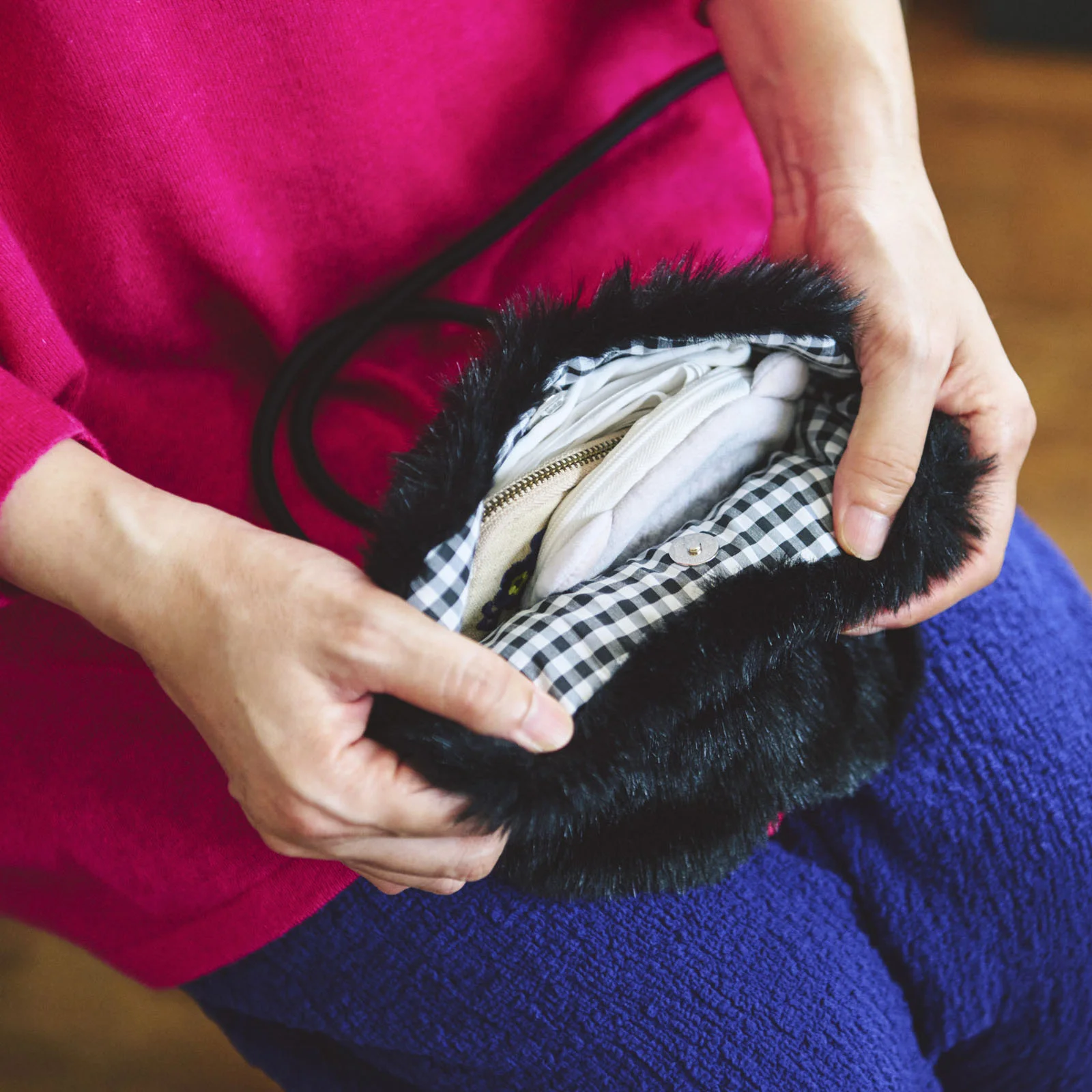 This pouch is perfect for carrying just the essentials, like a handkerchief and wallet, when you want to travel light. And if you pick up extra items, the reusable bag has you covered. You can also use it as a small pouch inside your everyday bag, where its unique design will definitely stand out. Enjoy your outings with this soft and fluffy black cat by your side.