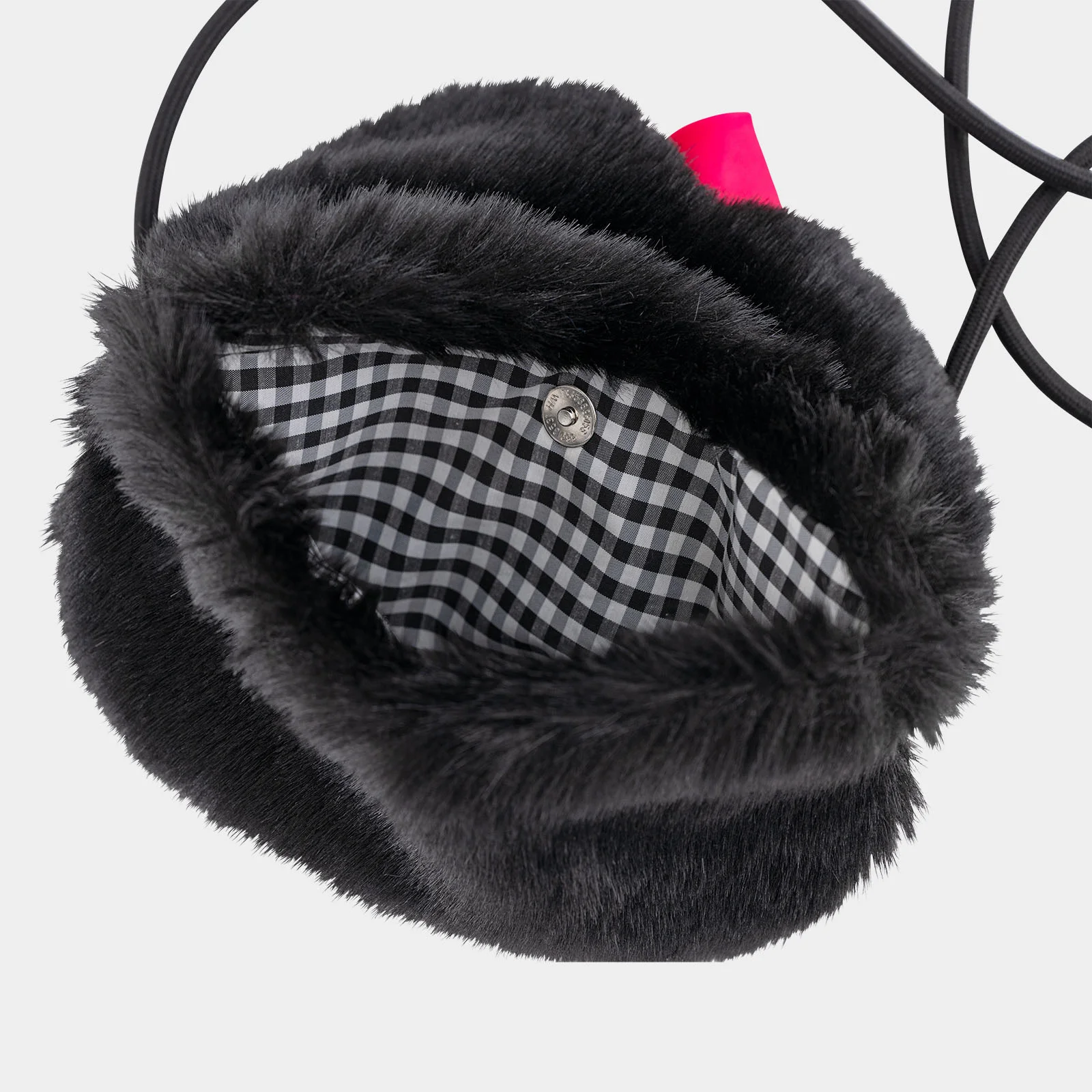 The fabric is a soft, fluffy faux fur that you’ll want to touch, while the interior is lined with a black-and-white gingham plaid pattern.