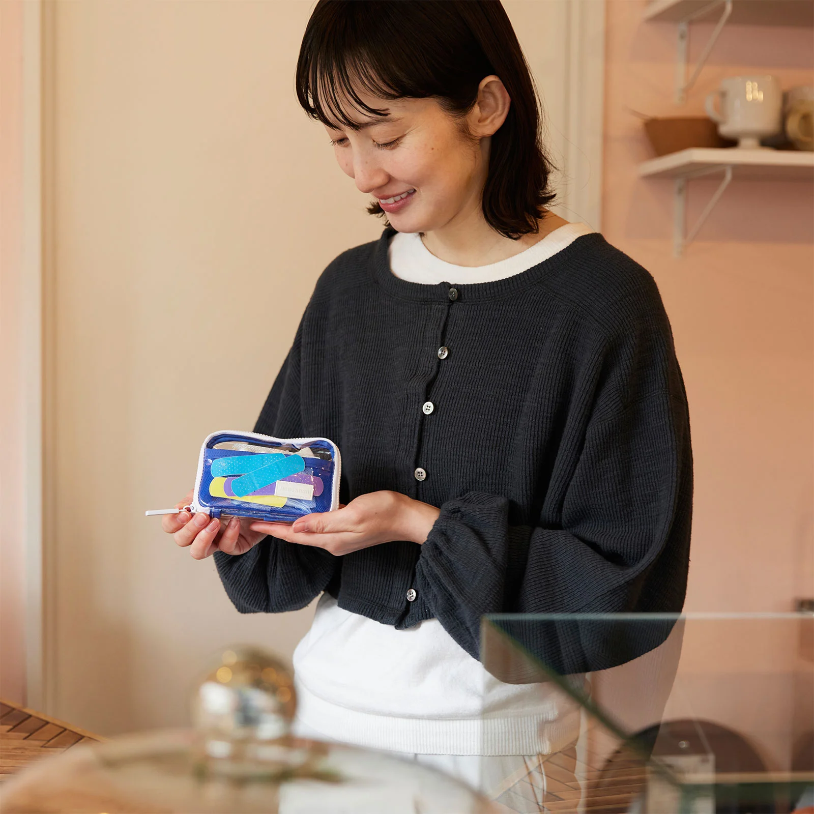 Clear Blue is made with a clear vinyl material that allows you to see the contents inside the pouch, giving it a casual and lighthearted look. It’s also stronger against water than its cloth counterparts, making it well-suited for bringing around town or taking along to play sports. The design pairs a vivid blue hue with a white zipper, giving it a refreshing look. The pouch is simple yet playful with the way its look changes depending on what you’ve stored inside. The inner pockets are made with a fine mesh for a convenient feature that also allows you to enjoy seeing what’s inside. It’s accented with a white silicon label with the Hobonichi logo.
