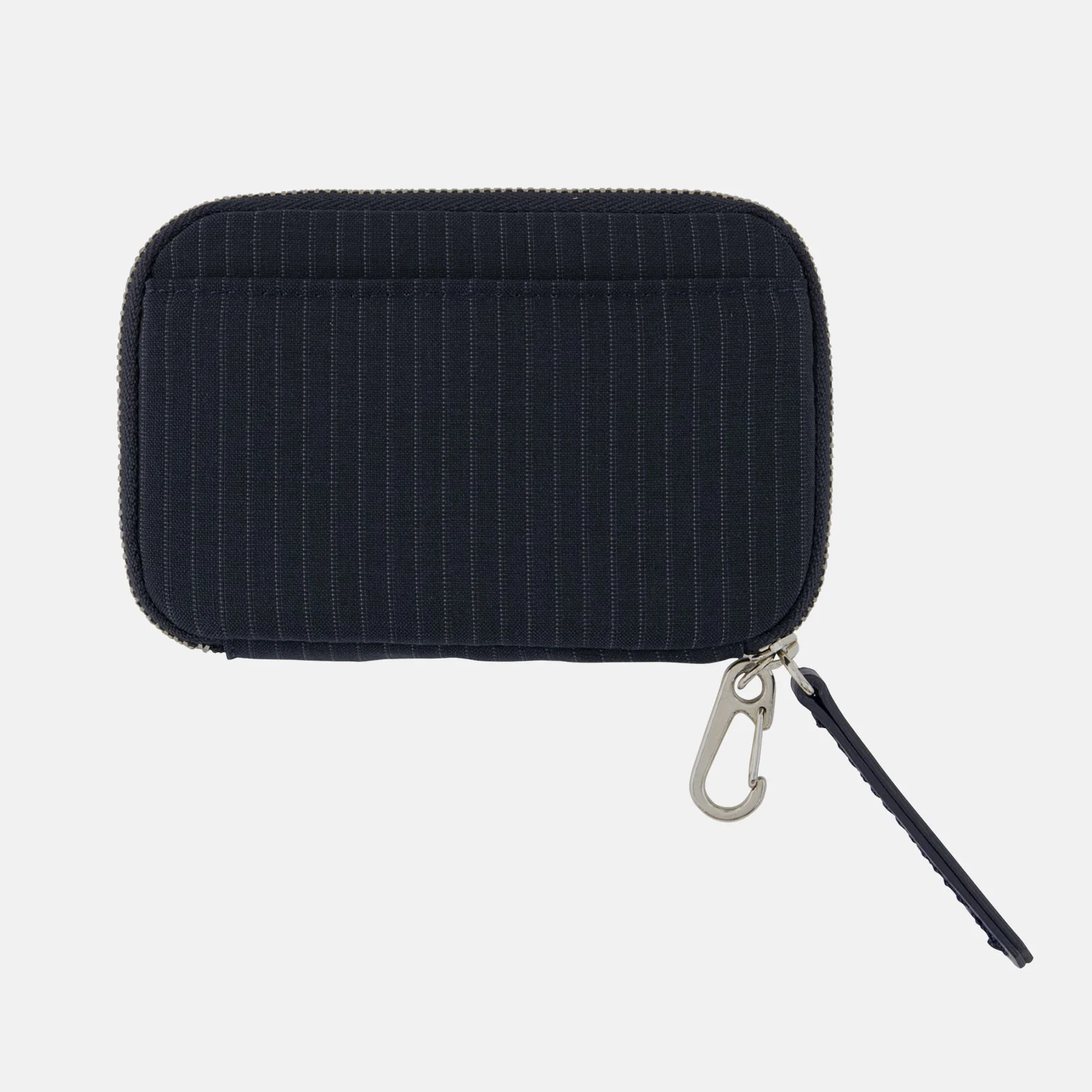 Suit Fabric: Navy Stripes is a Drawer Pouch specially made with high-quality suit fabric called Cordura Combat Wool, a high-quality textile that is stronger than wool. The simple yet stylish navy color overlaid with thin stripes provides a look that fits seamlessly into any setting. The pouch handle is made with navy leather and includes a small carabiner. The pouch interior is a plain navy hue.
