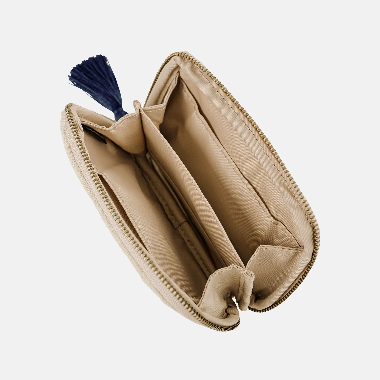 The pouch opens accordian-style and is the perfect size for storing cards. The interior is split into four zones to allow for detailed organization. While compact, the pouch also has enough storage space to hold items with volume, such as lip balm and earbuds.