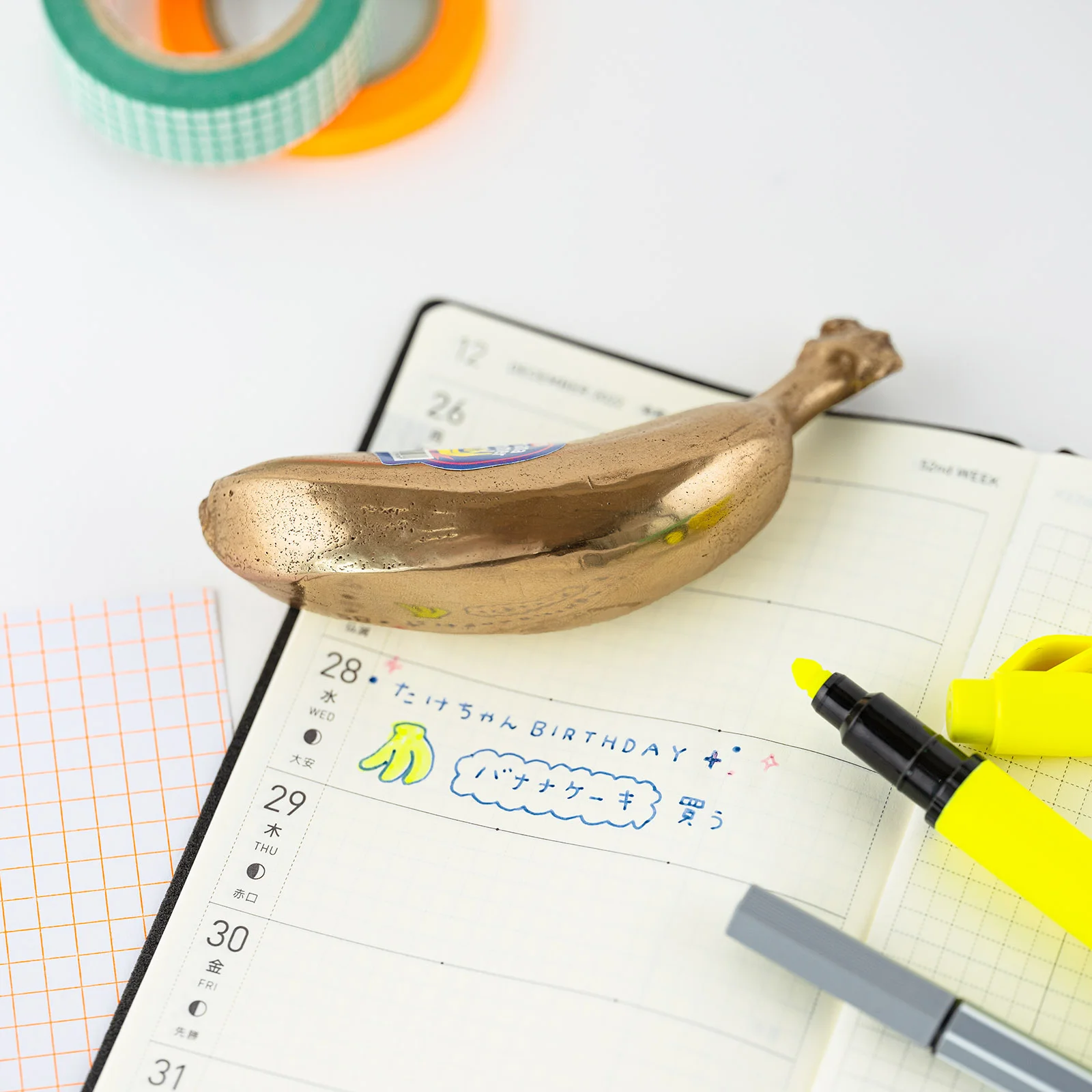 This is a banana-shaped bronze hammer. Molded from a real Philippine sweet banana and produced with precision casting technology, the uneven skin and the parts that are torn from the bunch are reproduced realistically. The elaborate sticker even has a barcode, giving a cute accent. Every aspect of it looks just like a real banana!