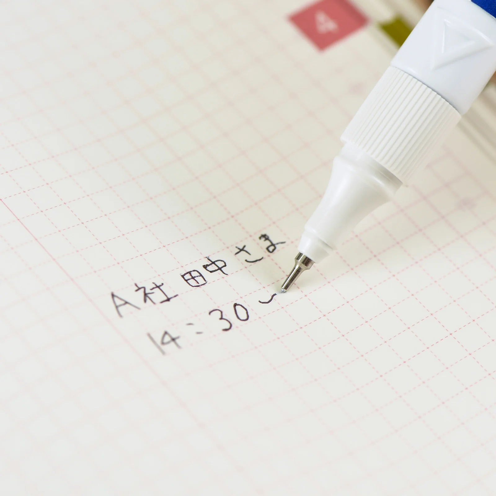 With a thin pen tip at only 0.42 mm, this slim correction pen is useful for fixing thin letters or detailed drawings. All it takes is a light squeeze of the pen to dispense the correction fluid as needed. The pen shape allows for easy storage in a pen case without taking up too much room, or even storage in the Hobonichi Techo cover’s pen holders for use anytime.