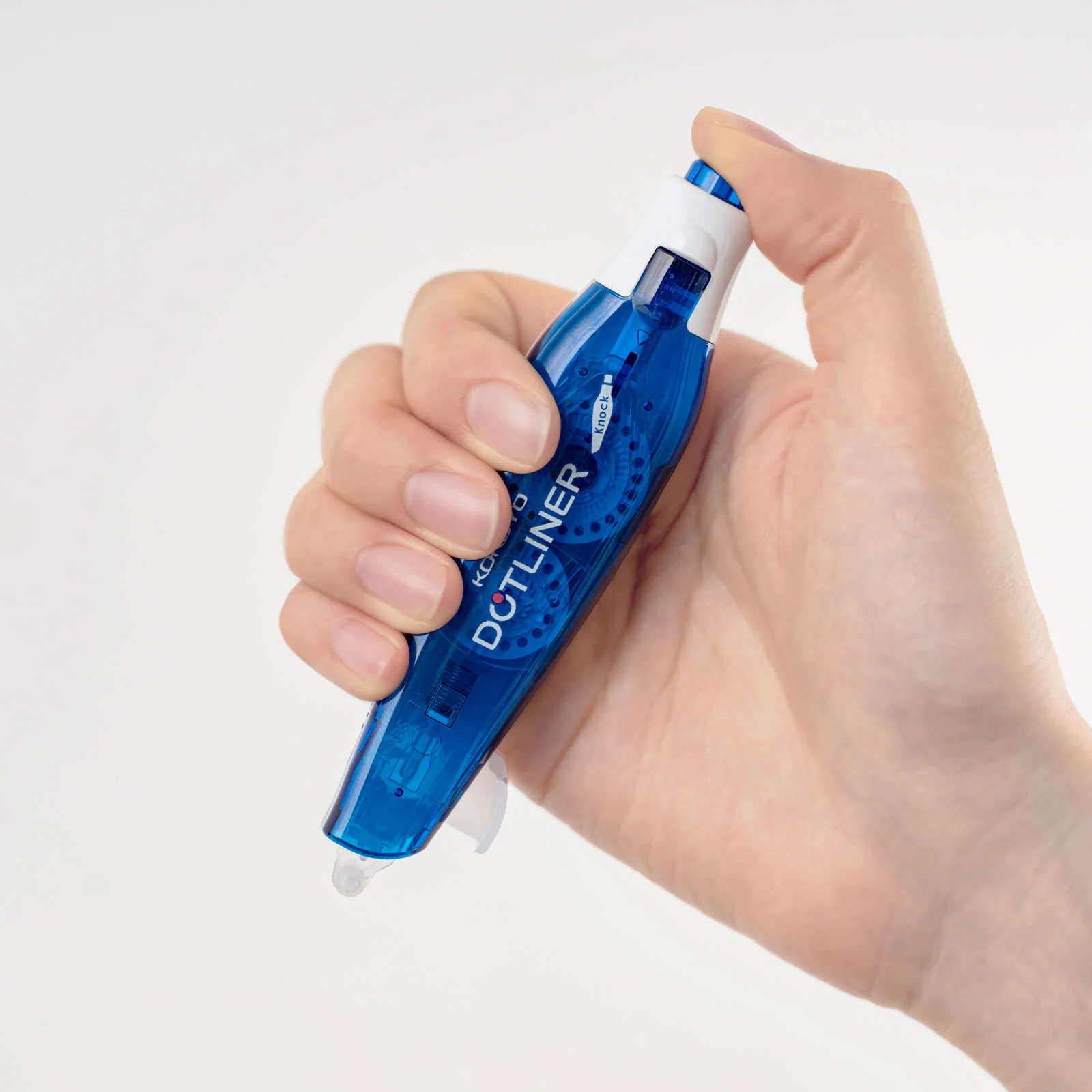 Click the button, and the cap at the tip opens. Pull it straight backward, and the glue is transferred to the surface. This allows for quick gluing and helps speed up the work.