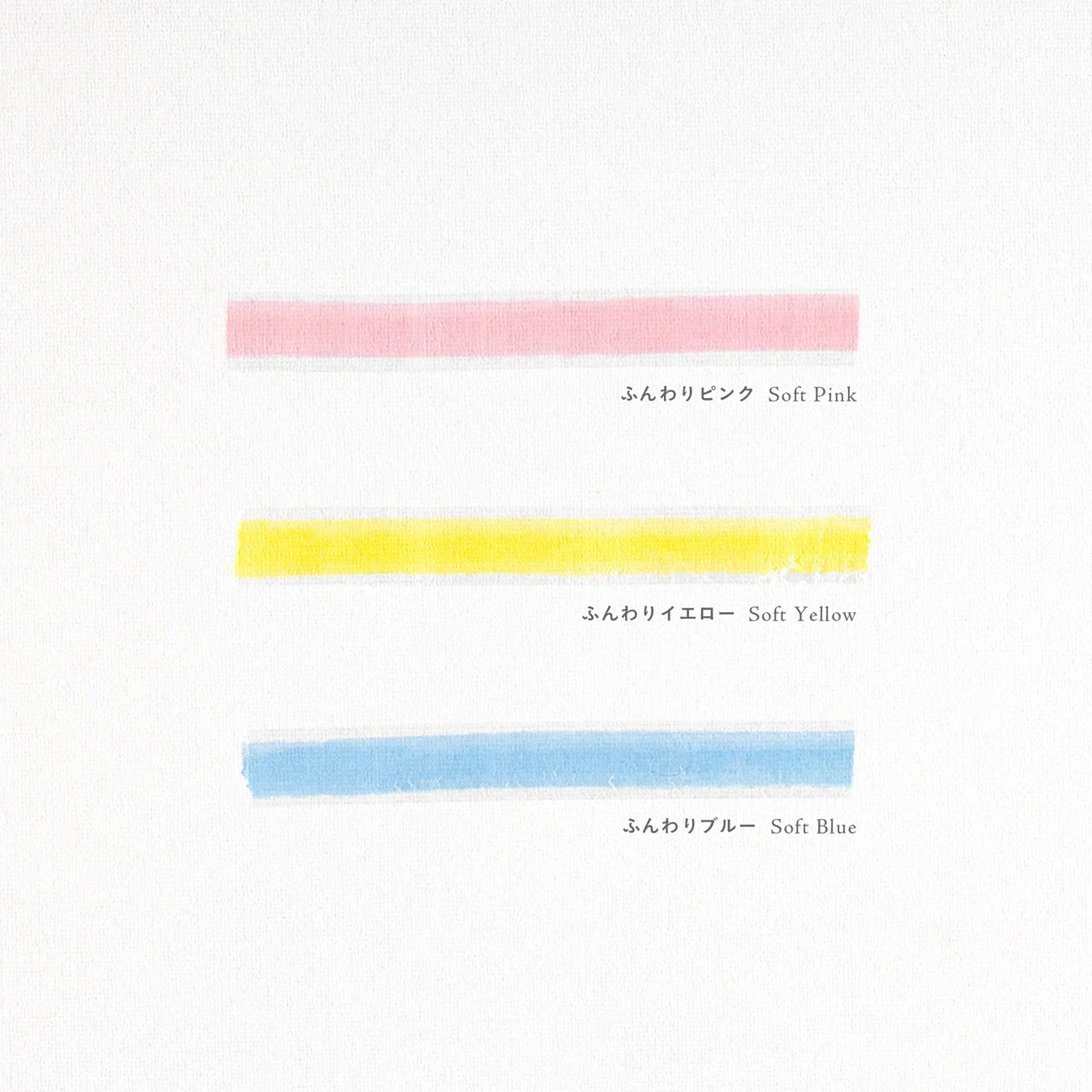 The width of the tape is 6mm. There are three color variations available: Soft Pink, Soft Yellow, and Soft Blue.