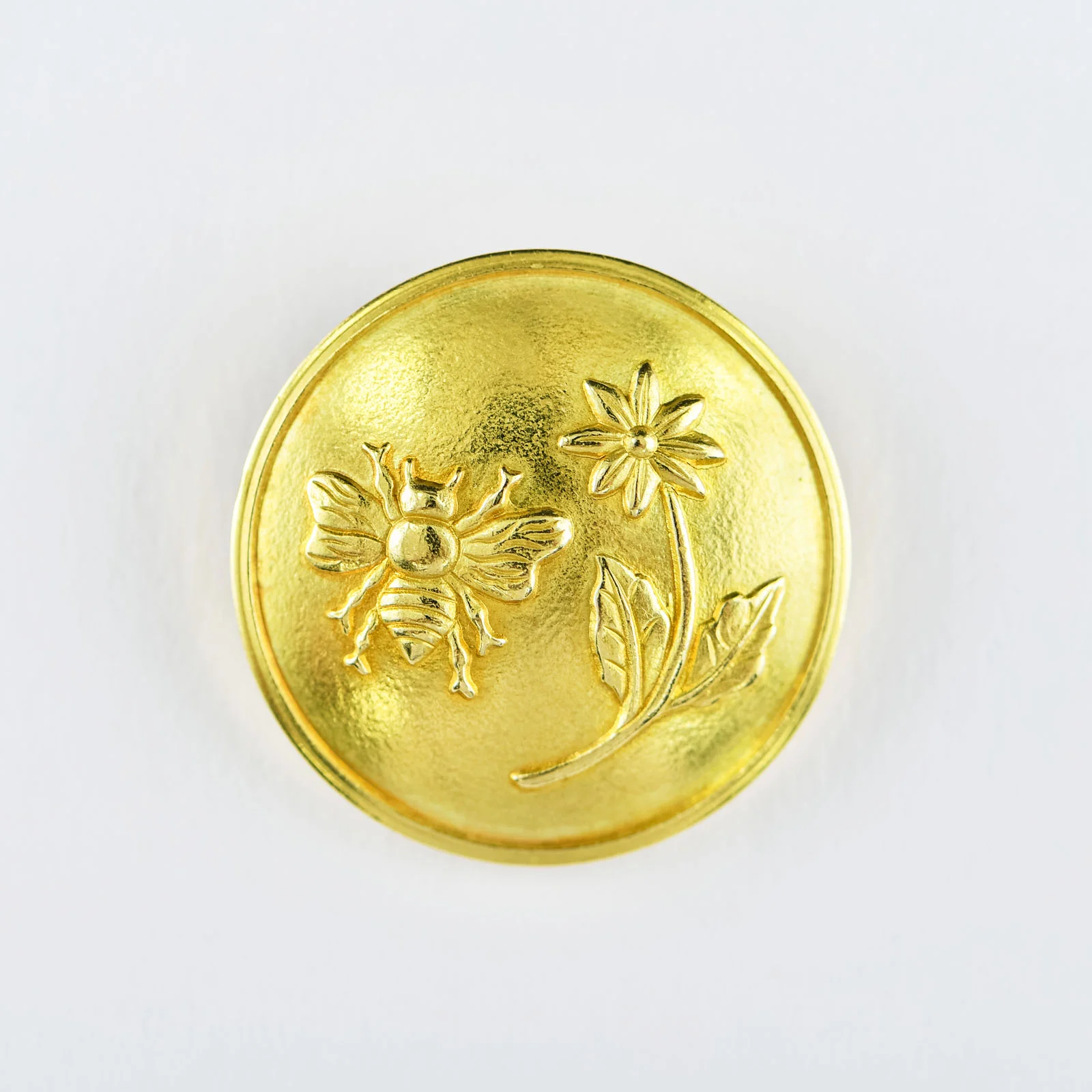 The Search & Collect is an antique button originally made in England. Etched into the button is an old symbol of good luck, the honey bee, and a dainty flower.