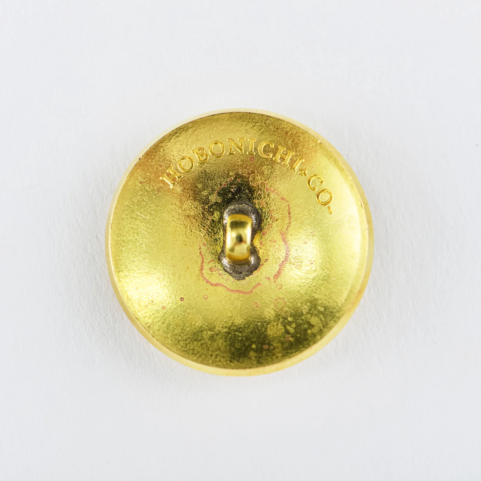 The button starts out bright and shiny, and gradually darkens and dulls over time in a unique way for that classic brass look you can enjoy (the way in which the buttons darken will differ from piece to piece).