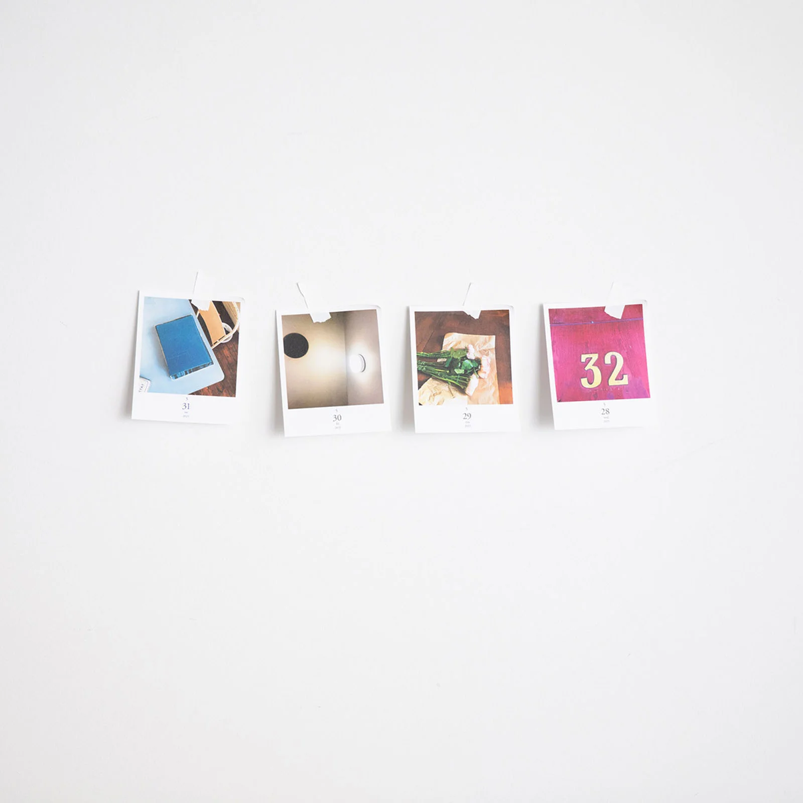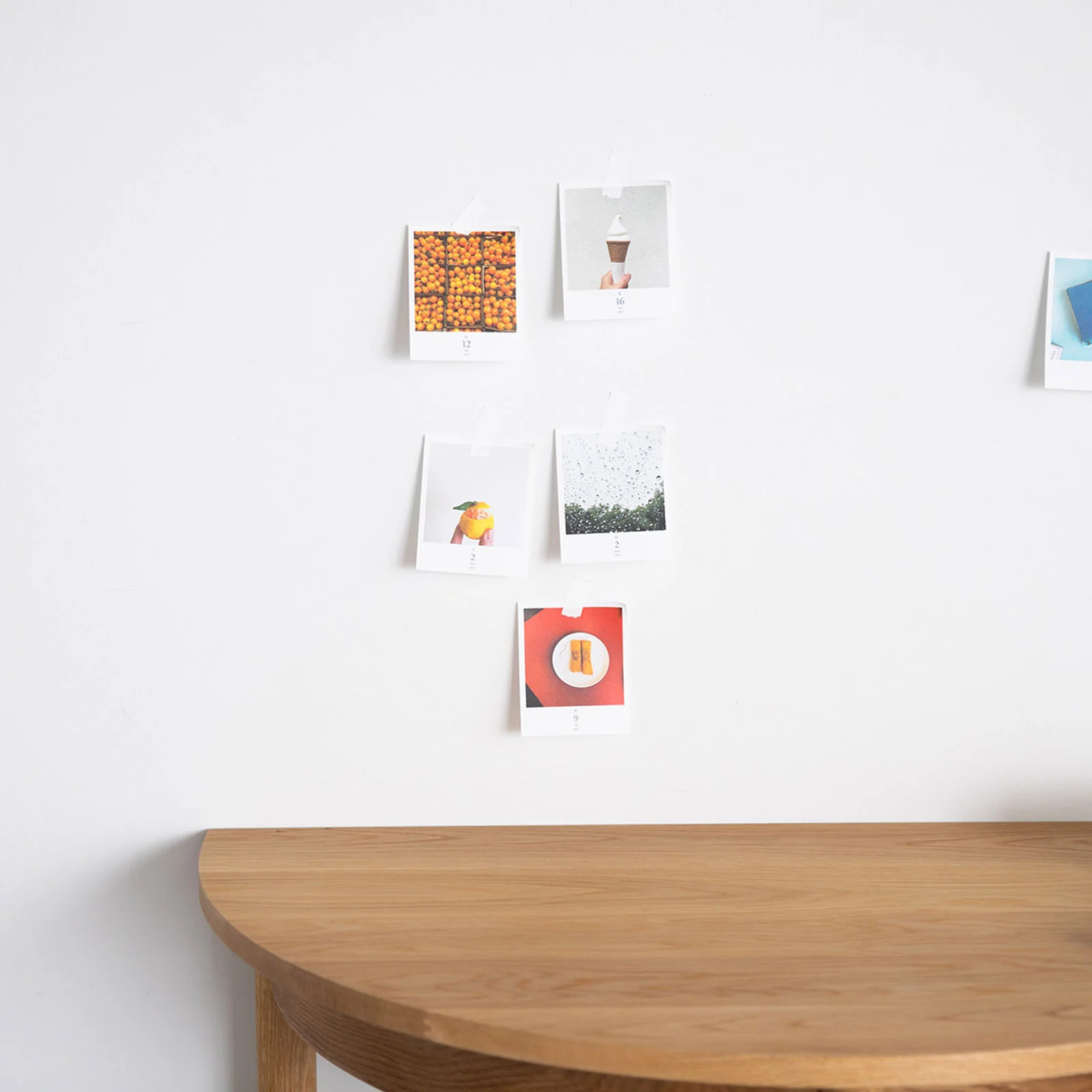 The format is sure to be nostalgic for those who recognize it, as it nearly matches the size and shape of a Polaroid photo. The pages may be thinner than one, but when you first start using this desktop calendar the total thickness of all the pages together comes out to about 3 cm (1.2"). You can either set the calendar flat on your desk or assemble the stand that’s available by slits on the chipboard on the back of the calendar.
