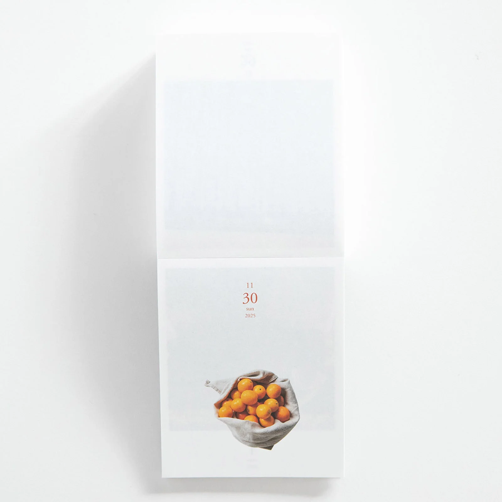 The 2025 edition features 365 days’ worth of content. On weekdays and Saturdays, you’ll find photos taken by Masako Ito over nearly a year. For the cover and Sundays/holidays, photos styled by Ito and captured by photographer Suguru Ariga, who shoots almost all of the styled images for Weeksdays, are printed in a simple layout alongside the date and day of the week.