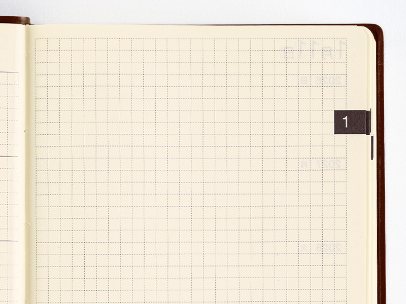 The 5-Year Techo has the same 3.7 millimeter graph paper as the Original and Cousin. Feel free to write along the lines of a single line or two ― or just ignore the lines altogether.