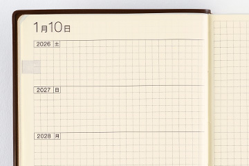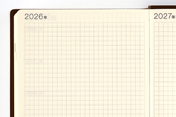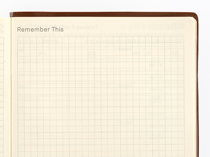 The basic format of the 5-Year Techo has the same date across five years listed on the left side, and a blank graph paper memo page on the right. The layout is flexible enough to allow users to either fill in their pages the same way every day or mix things up as they go.