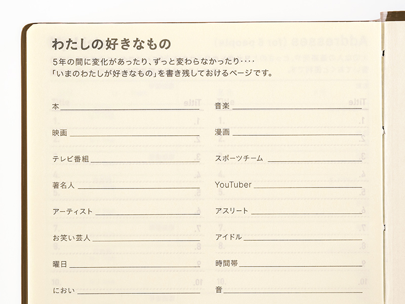 This page is useful for writing down notes that aren’t time-sensitive or things you’d like to note across all five years.