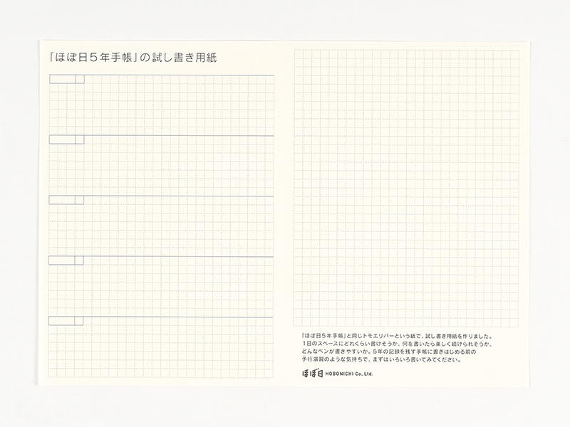 This test sheet of paper allows you to get a feel for the paper and test pen or ink compatibility before using your 5-Year Techo.