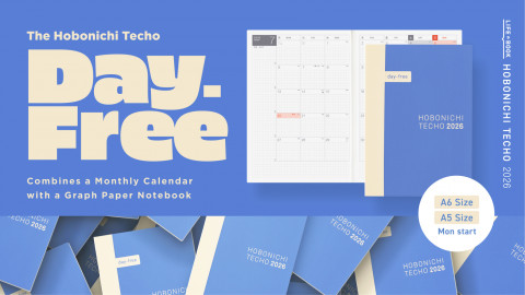 The Day-Free comes with a bright blue cover reminiscent of a lovely clear sky. The words day-free and HOBONICHI TECHO 2026 are printed in ivory.