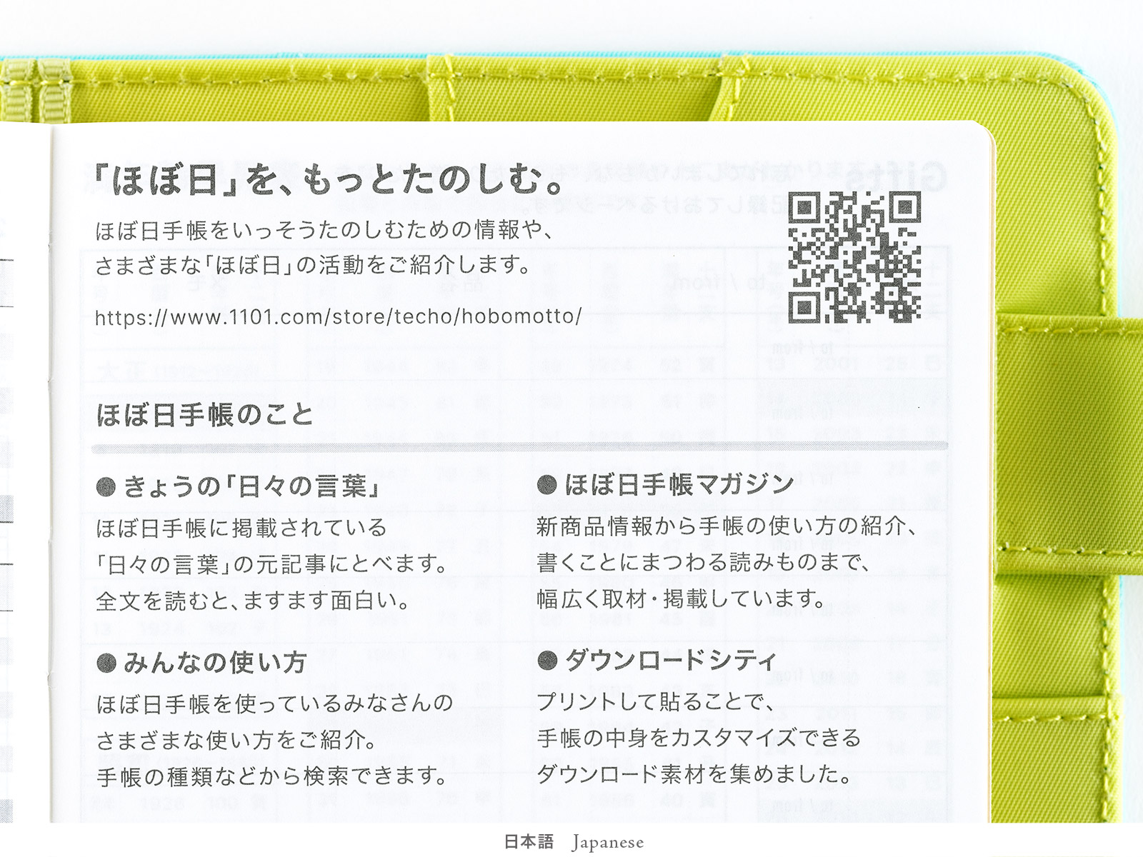 This page includes information to further enjoy your Hobonichi Techo and an introduction to what Hobonichi does. Also contains a link to a list of Japanese articles the quotes are selected from.
