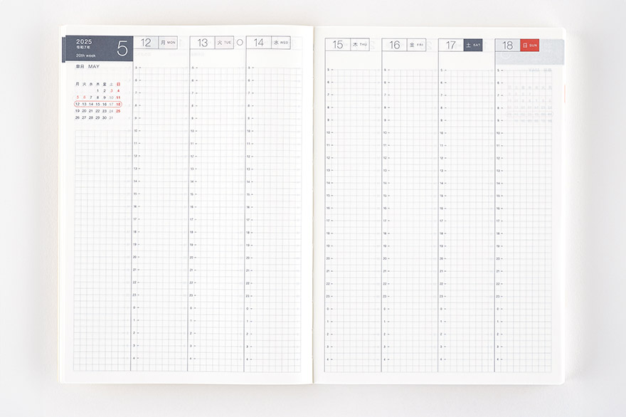 | Listed Information | Day of the year / Week of the year (listed on monthly calendars and weekly pages) / Old lunar calendar / Rokuyo (traditional Japanese lunisolar calendar) (listed on monthly calendars) / Solar terms / Japanese holidays / Moon phase (daily pages include every phase, monthly calendars and weekly pages only include full and new moon) |