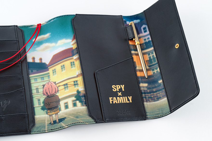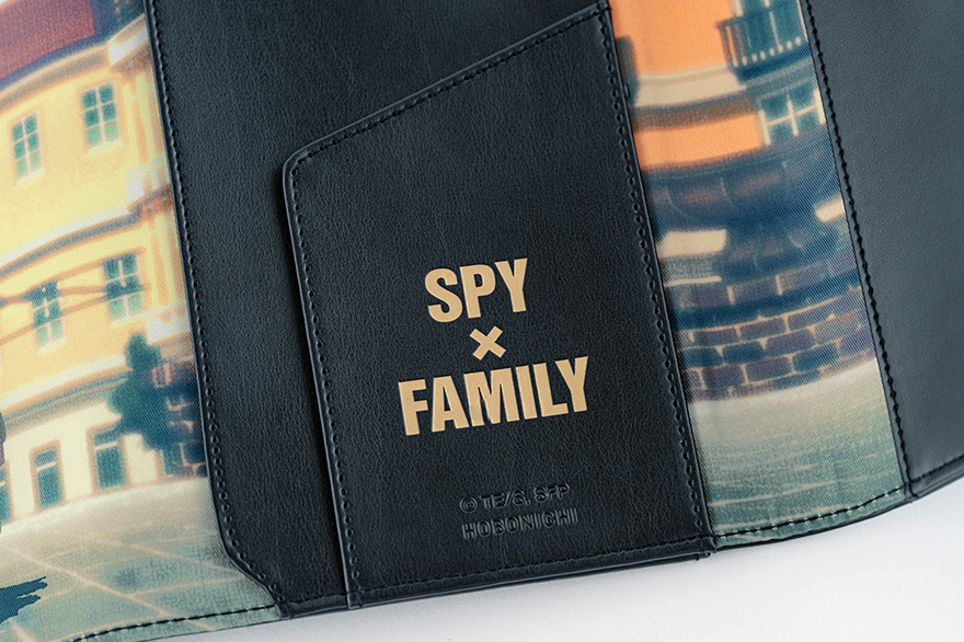 The “SPY x FAMILY” TV animation logo is foil-pressed in gold on the right side pocket.