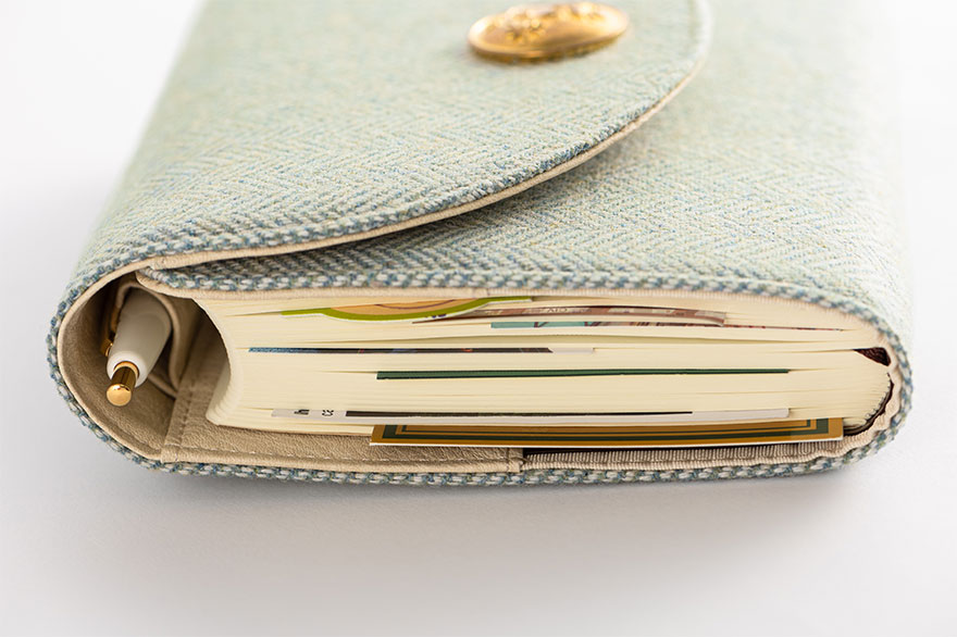 The brass button shining in the center of this cover is by button and jewelry specialty shop CO-, which handles everything from antiques to modern items. They’ve specially created these buttons for the Hobonichi Techo cover by reprinting antique buttons originally made in England.