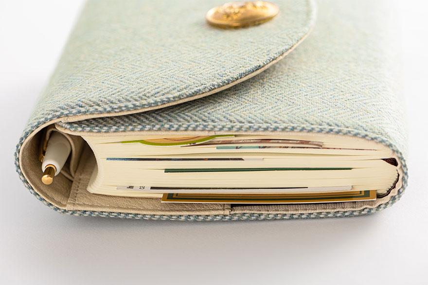 The brass button shining in the center of this cover is by button and jewelry specialty shop CO-, which handles everything from antiques to modern items. They’ve specially created these buttons for the Hobonichi Techo cover by reprinting antique buttons originally made in England.