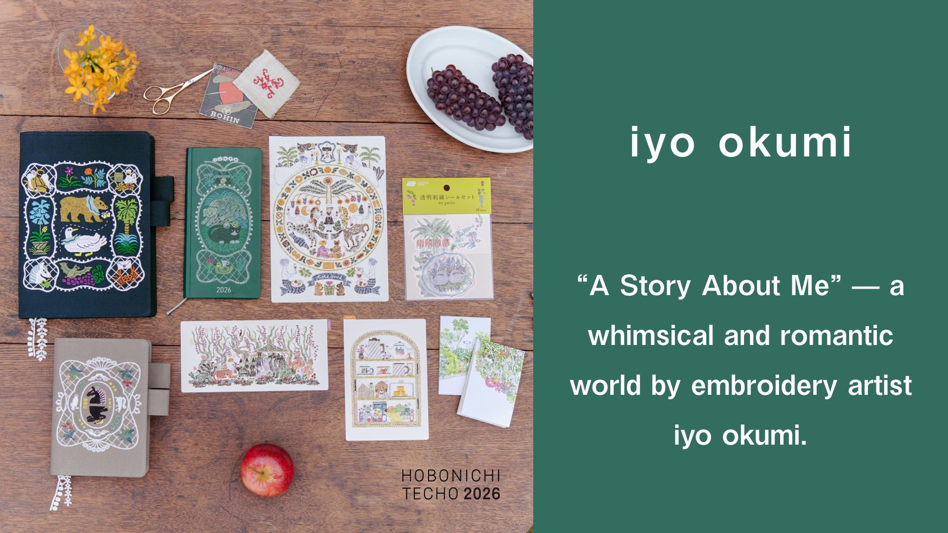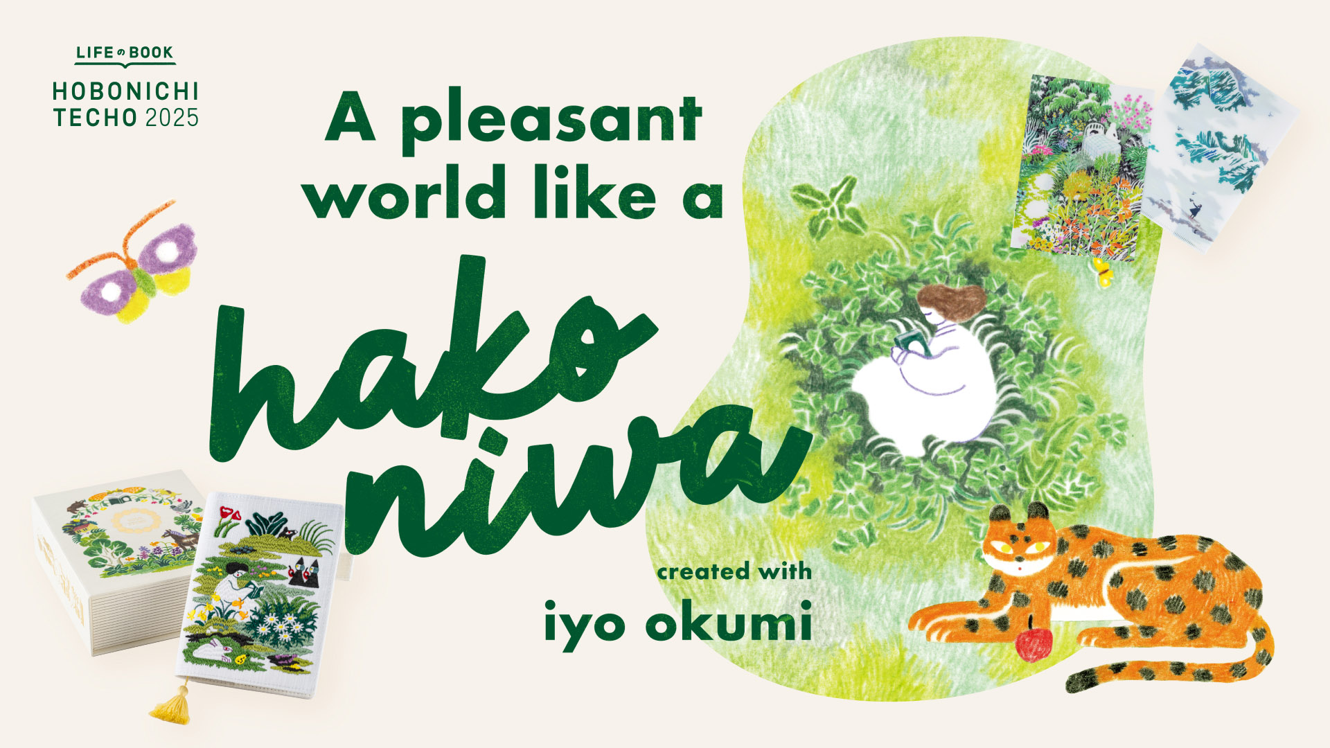 We created this box with designs by embroidery artist and illustrator iyo okumi. The cover and pencil board are all designed by okumi. The theme of this set is “haconiwa,” which means “miniature garden” in Japanese.