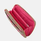 The polka dots have dynamic shapes to them, as if they were drawn freehand, and their texture is pleasing to the touch. There’s a warmth to the textile that doesn’t detract from the gorgeous look. The interior and hand strap are both hot pink.