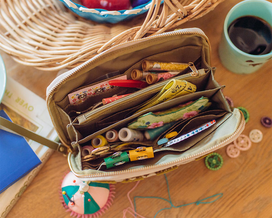 Use the pouch to store needles, thread, buttons, measuring tape, and other tools to make a handy sewing pouch. You can use the pouch to store any tools related to your hobbies for a convenient all-in-one carrying case.