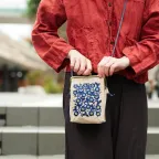 The Ukrainian Flowers design was previously featured on a very popular Hobonichi Techo Cover. The design is based on the beautiful embroidery of traditional Ukrainian clothing, sorochka. It has been recreated with navy and bright yellow threads embroidered onto a linen fabric. The interior is beige, and the kiss lock clasp is in antique gold. We also added a navy tassel.