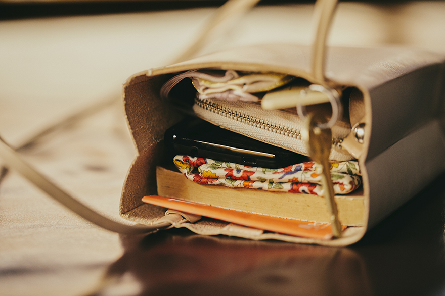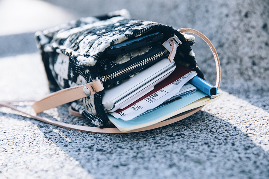 Carry it with you when you want to wander around the neighborhoods of your hotel or go down to have breakfast. Bring along your room keys, wallet, handkerchief, books, and the minimum items you need.