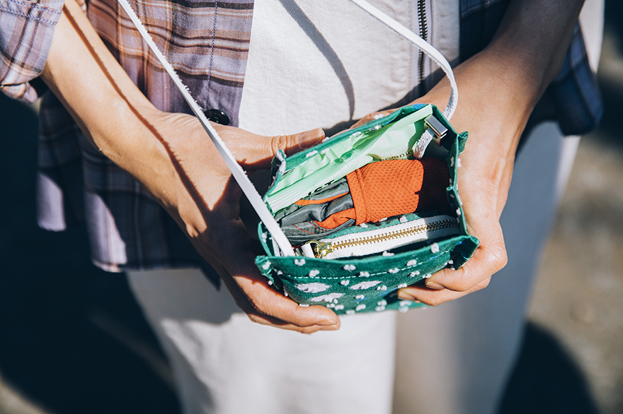 Use it as a bag to bring with you on your walks. It will fit the Drawer Pouch Pocket that will act as a wallet, alongside your smartphone, earbuds, snacks and a small water bottle.
