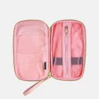 The pouch makes a great makeup case. Use the array of pocket sizes to organize tools, and take advantage of the open-flat case to lay it out and see everything at once. (Pictured: Sugar Rose)