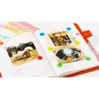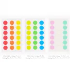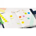 These patches come in two sizes: 5 mm (5 pieces) and 16 mm (10 pieces). Both sizes are suitable for using in the monthly calendar to mark special days. We also recommend using the 16 mm size to tape down the corners of tickets, photographs, and other mementos.