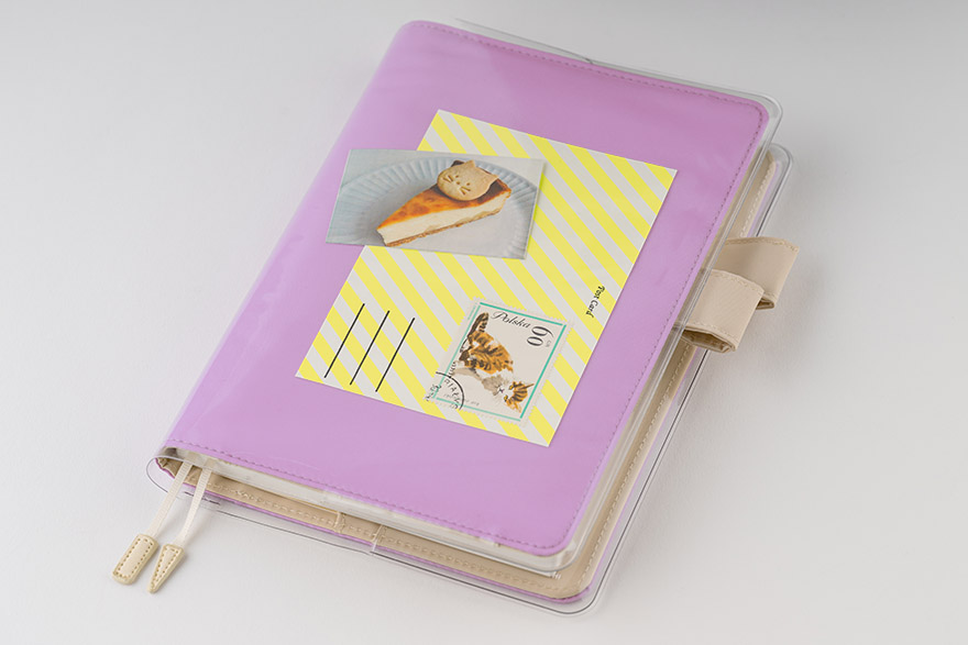 Cover on Cover is an optional, extra covering that fits select Hobonichi Techo covers to protect them from wear and tear. (Not for use directly on book.) It also provides a place to store postcards, pictures, and other decorations to spruce up the look of your cover. Feel free to fill it with family pictures, travel post cards, and other things that cheer you up!