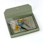 This handy case can store a Hobonichi Techo HON, documents, writing utensils, and more. While looking elegant with a calming color scheme, the soft PVC material makes it light and easy to carry around. It opens and closes with snap buttons, and its simplified and slim shape makes it fitting for any setting.