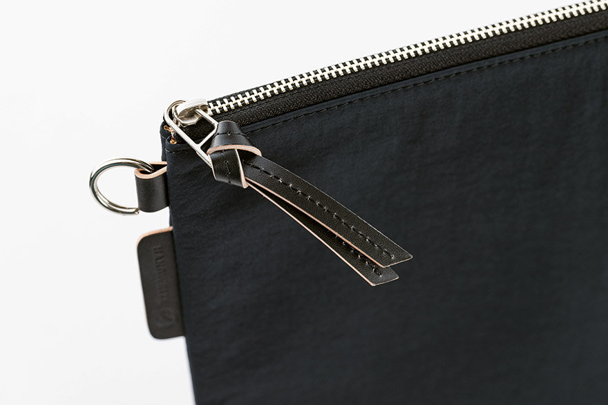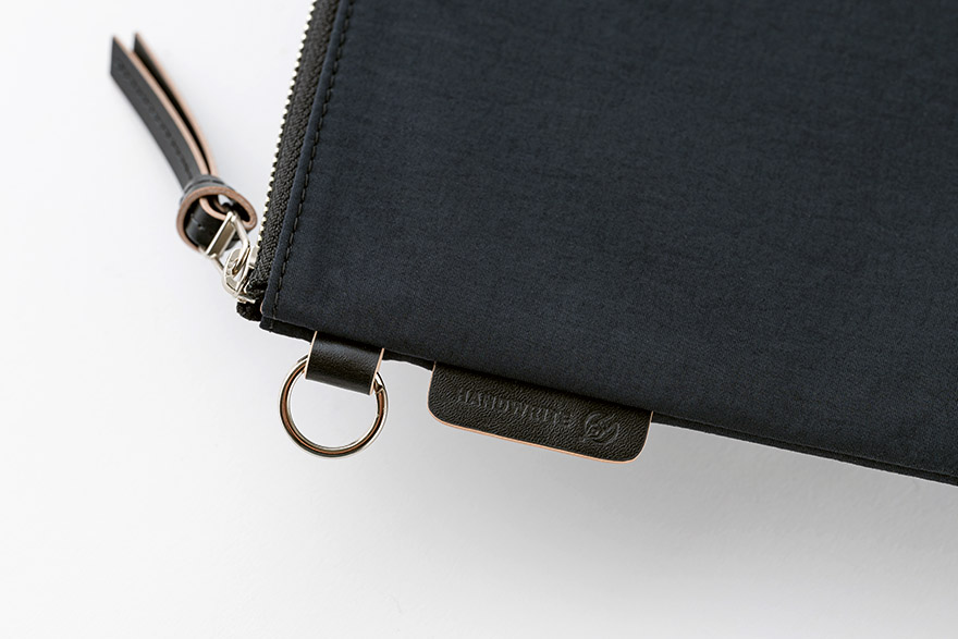 We created a pouch to store the Hobonichi Techo HON. The L-shape zipper opens the pouch extra wide for easy access, but doesn’t have a gusset and is flat so it looks extremely simple and smart. We aimed for a casual beauty that is effortlessly cool. This pouch is nice and light and is made with the same material as the Tragen cover, which uses a soft nylon with an elegant sheen.