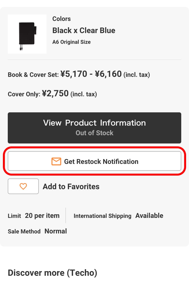 *This service is only available for the Hobonichi Techo and the Drawer Pouch. Restock notification emails are not available for accessories.