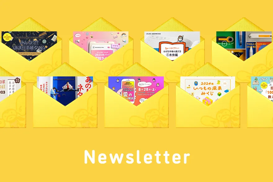 Every week, we send out a newsletter with announcements about the Hobonichi Techo, links to the latest articles to read on the official website, new product information, and more.