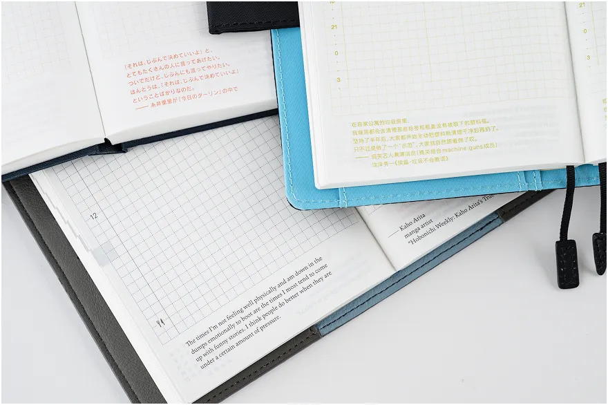 There are daily quotes at the bottom of the pages. These are specially curated from articles on the Hobonichi website, including recurring columns and interviews, and range from heartfelt to humorous. The quotes are from all kinds of people, including creators, actors, our readers, and Shigesato Itoi himself.