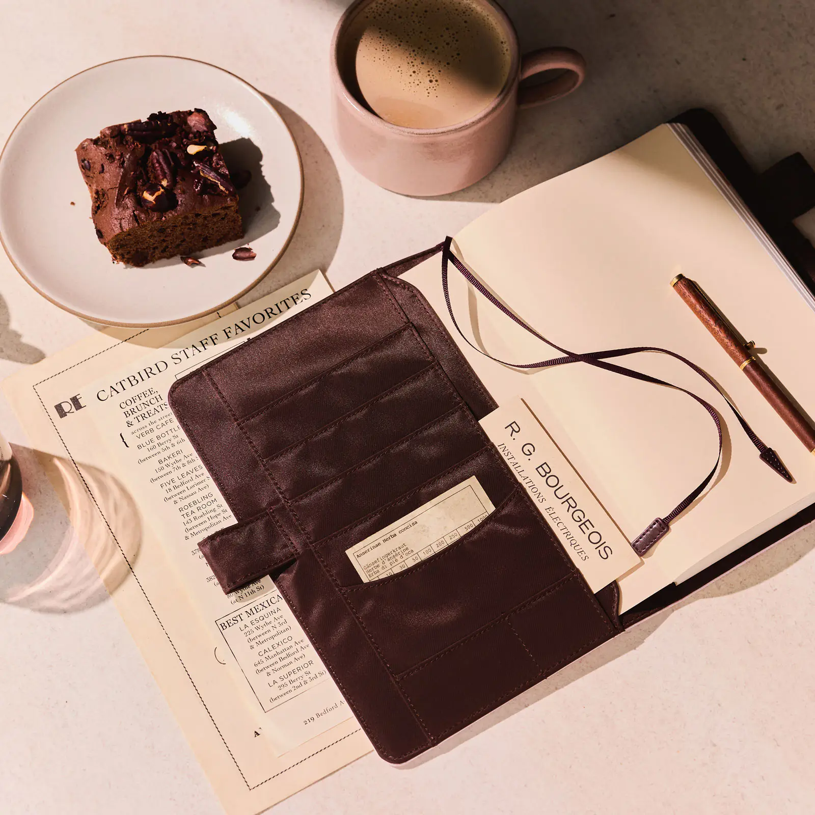 The “butterfly-stopper” pen holders act as a hinge, keeping the cover safely shut while you store a pen inside.